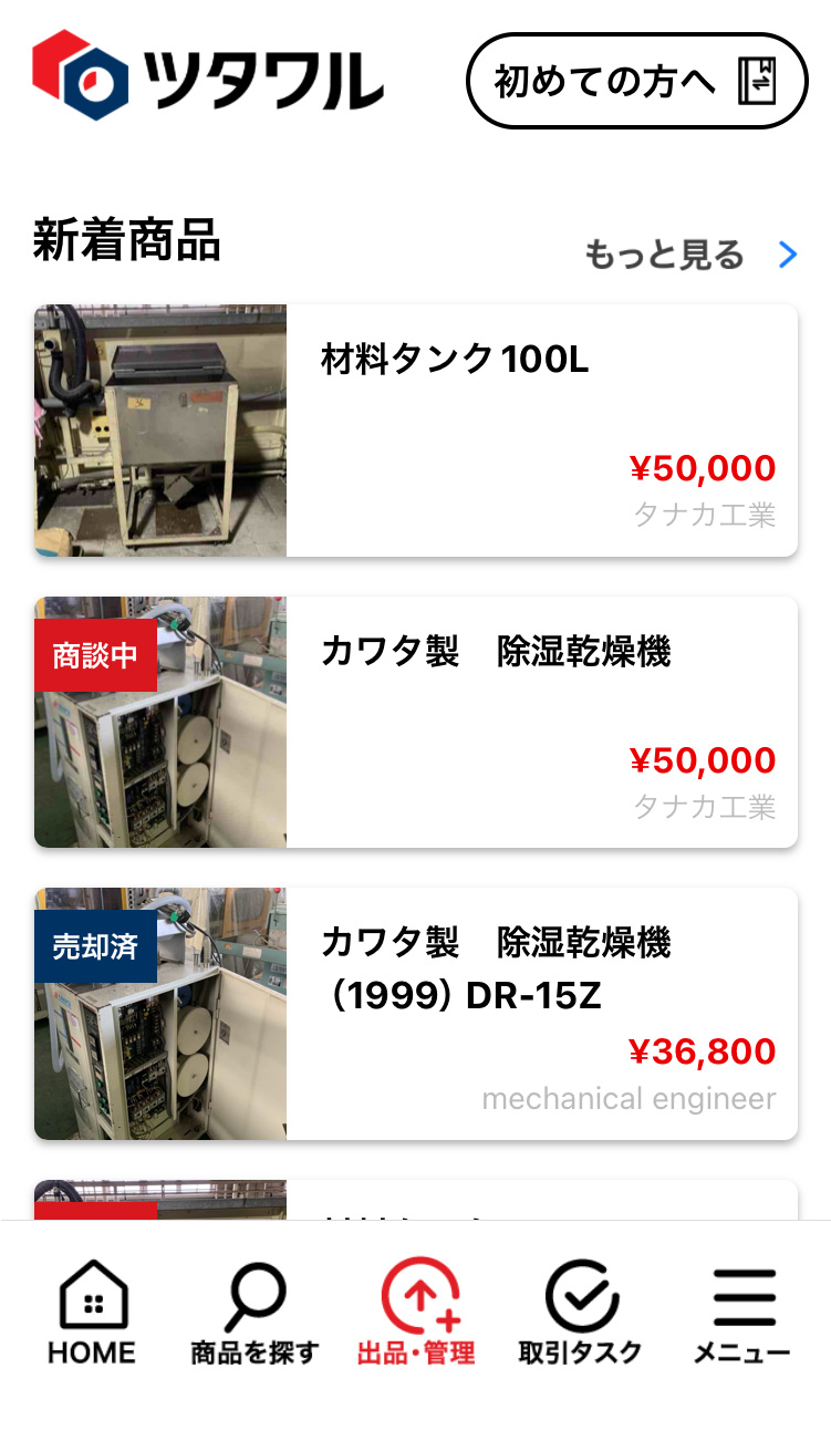 申請が承諾されると商談画面が開設され、チャット機能を使った商談が可能になります。下部メニューの「取引タスク」をタップして取引タスクの一覧画面へ移動してください。