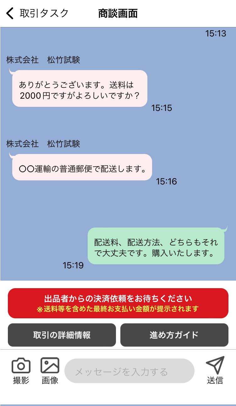 3チャット機能を使って商談(配送方法や送料の相談)をする