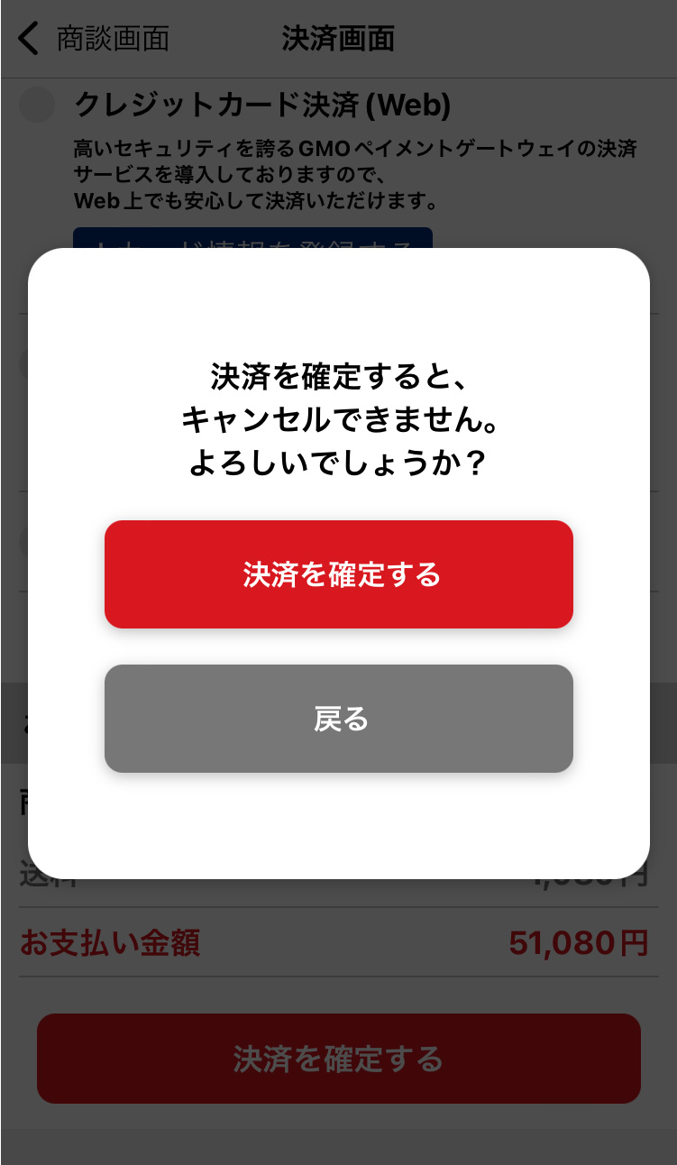 内容を確認して「決済を確定する」をタップしてください。