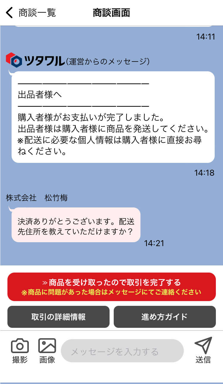 配送先住所や担当者氏名、配達希望日時など、配送に関する詳細情報のやりとりを行ってください。